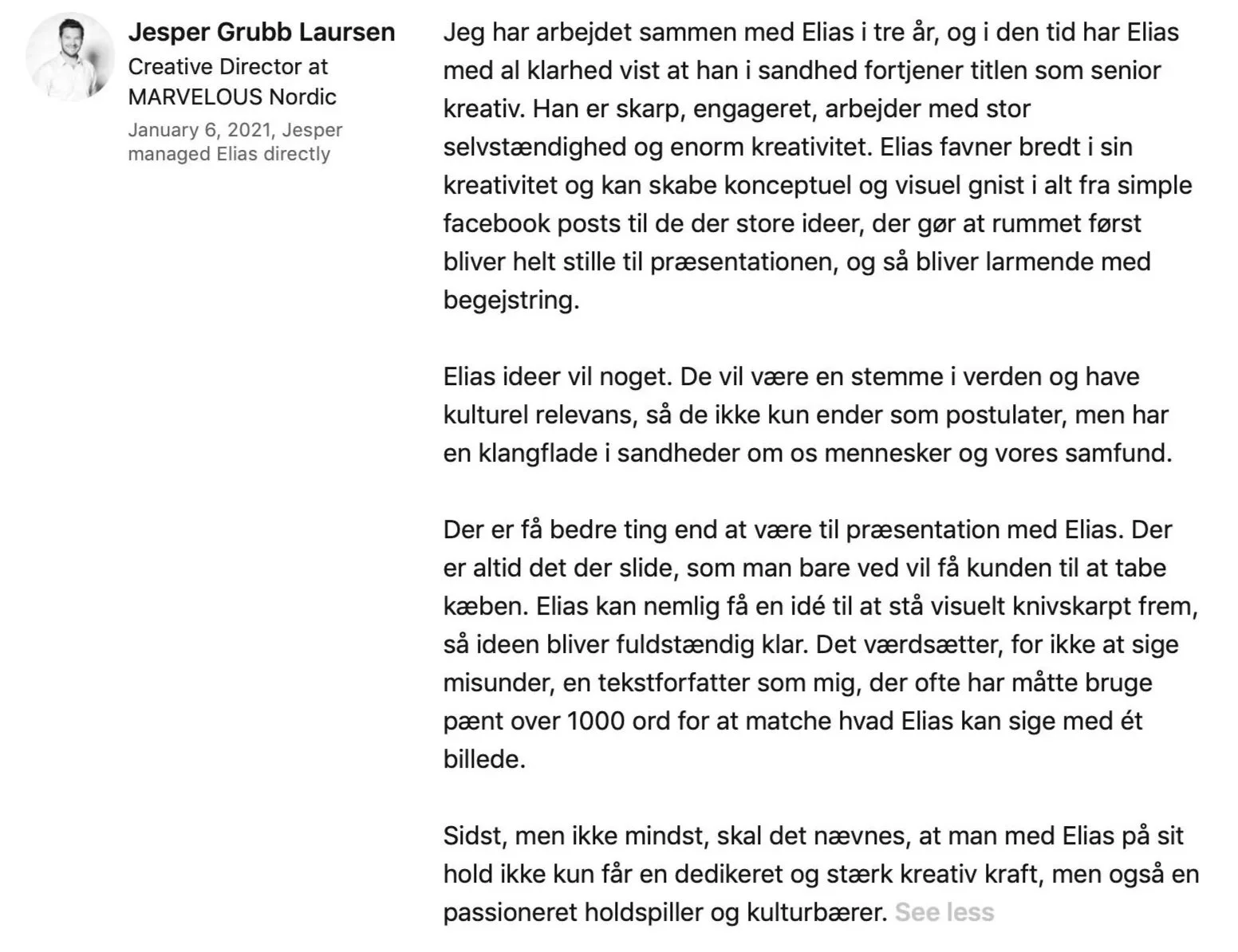 I’m a Senior Creative and Art Director with more than 18 years of experience across London and Copenhagen. My work spans concept, storytelling, and design, blending craft and technology to create ideas that connect emotionally and resonate across audiences and platforms.